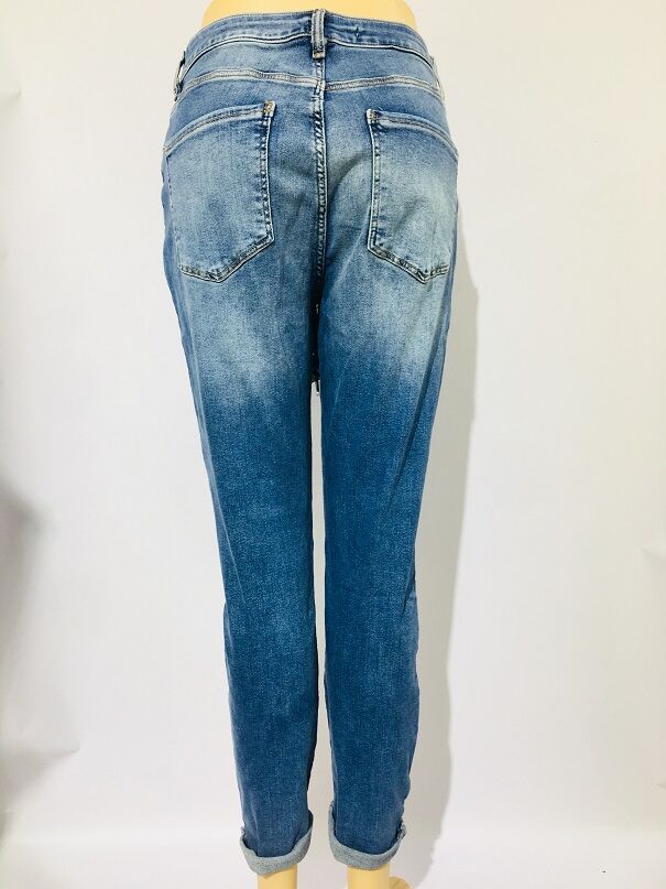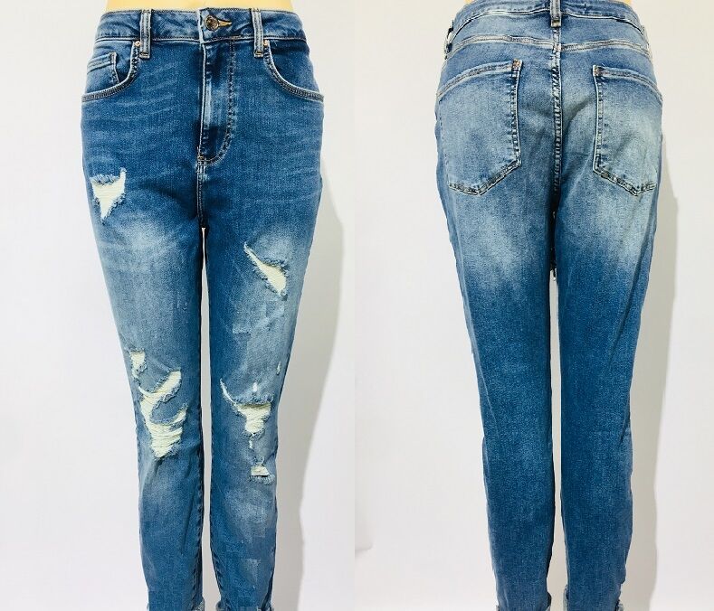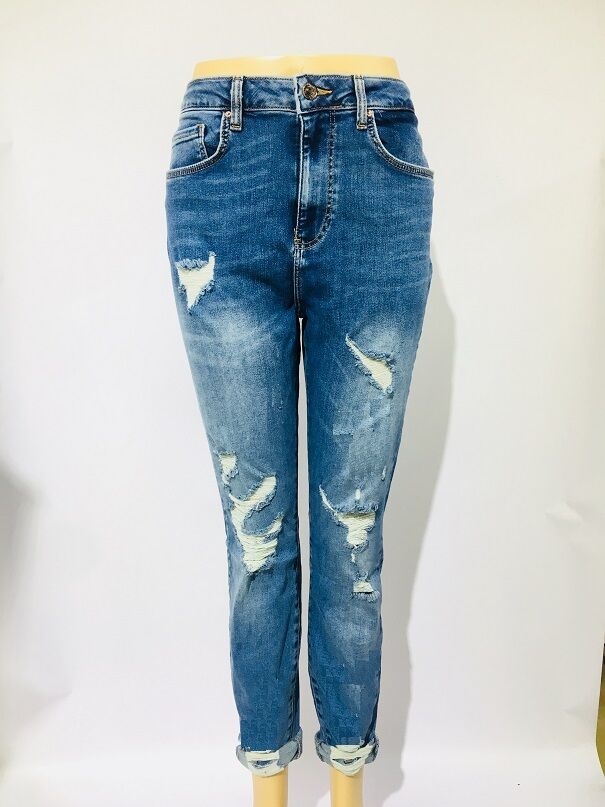 High Stretch Distressed Skinny Fit Denim Manufacturer Jeans Mid Blue For Women, with soft fabric and modern stylish high ripped ladies slim denim jeans show beautiful body shape, believe everybody is sweet on these denim jeans.