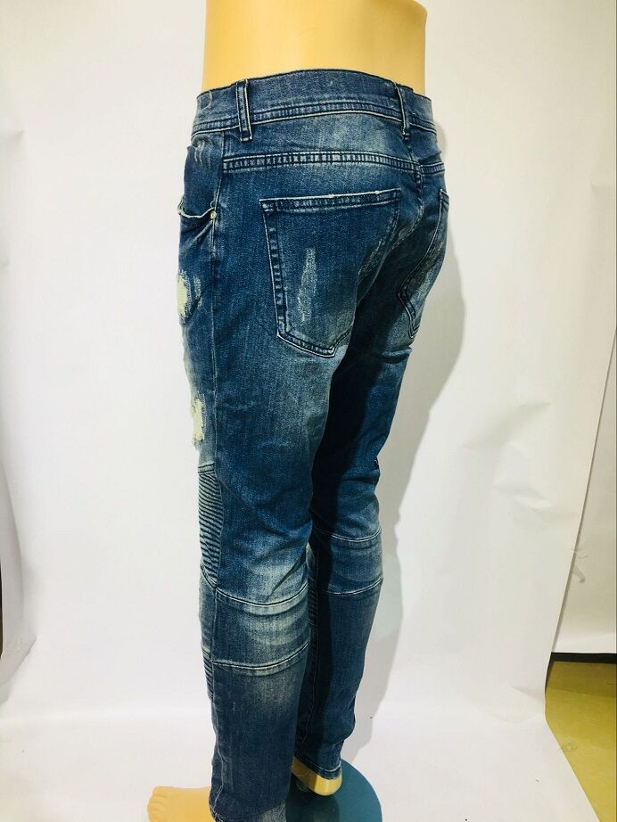 Super Cool Men Biker Repaired and Ripped China Denim Slim Fit Jeans Vendor In Mid Blue